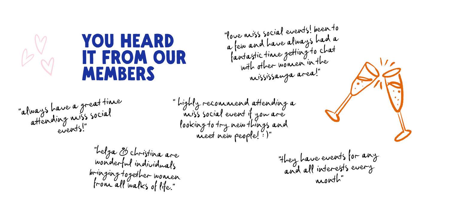 Welcome to Miss Social, a vibrant and inclusive social club dedicated to creating unique and engaging experiences for women in Mississauga, Oakville, Toronto, and across the GTA. We strive to foster an organic environment where women of all backgrounds and lived experiences can meet, connect, and most importantly, stay local.